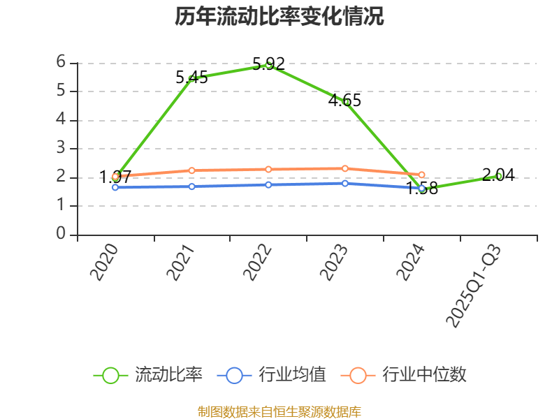 2025年前三季度,公司流动比率为2.04,速动比率为1.69。