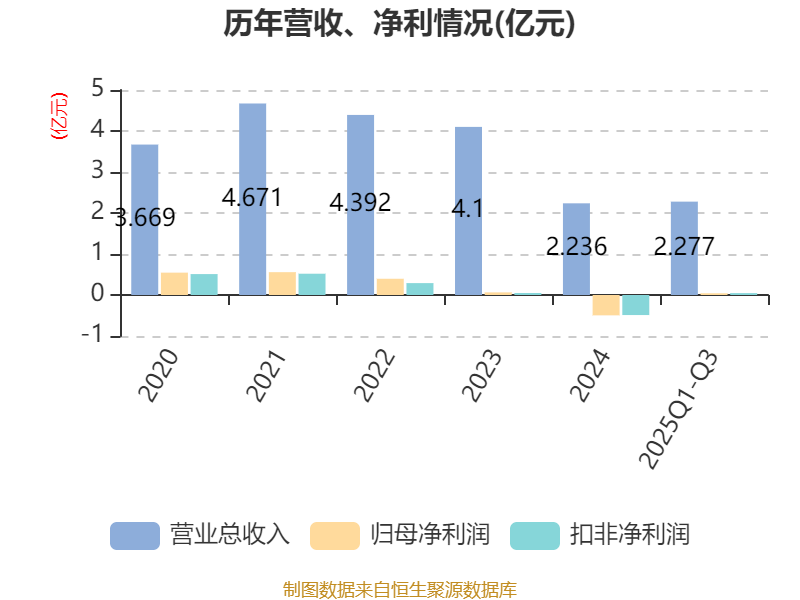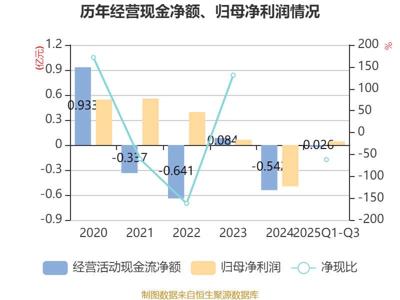 2025年前三季度,公司经营活动现金流净额为-259.87万元,同比增加9913.45万元;筹资活动现金流净额3.22亿元,同比增加2.86亿元;投资活动现金流净额-3.8亿元,上年同期为-892.18万元。