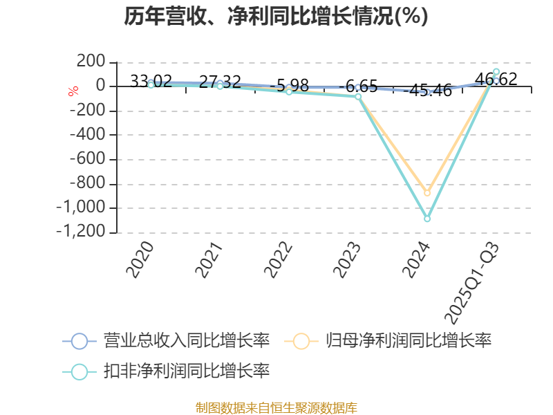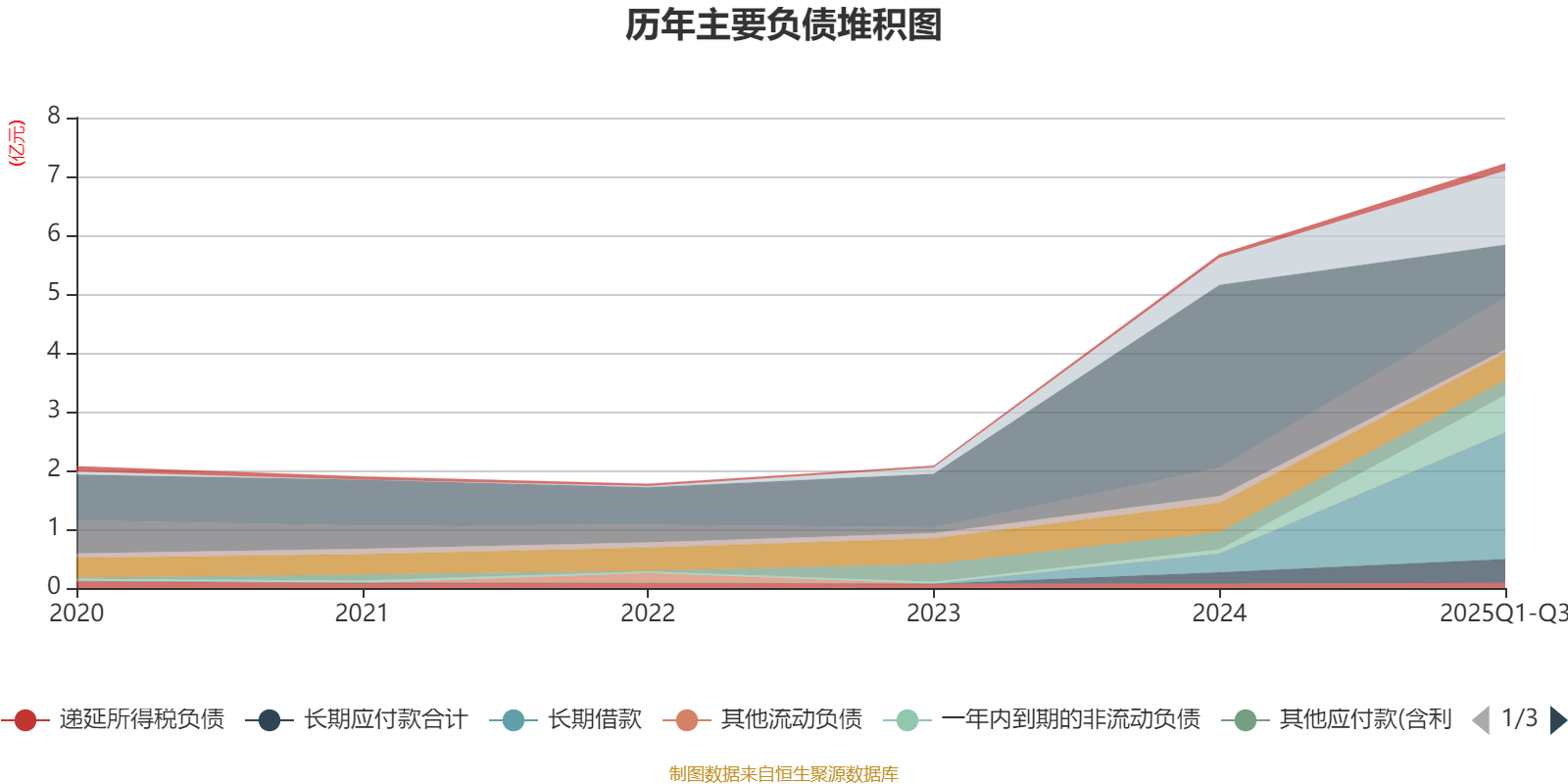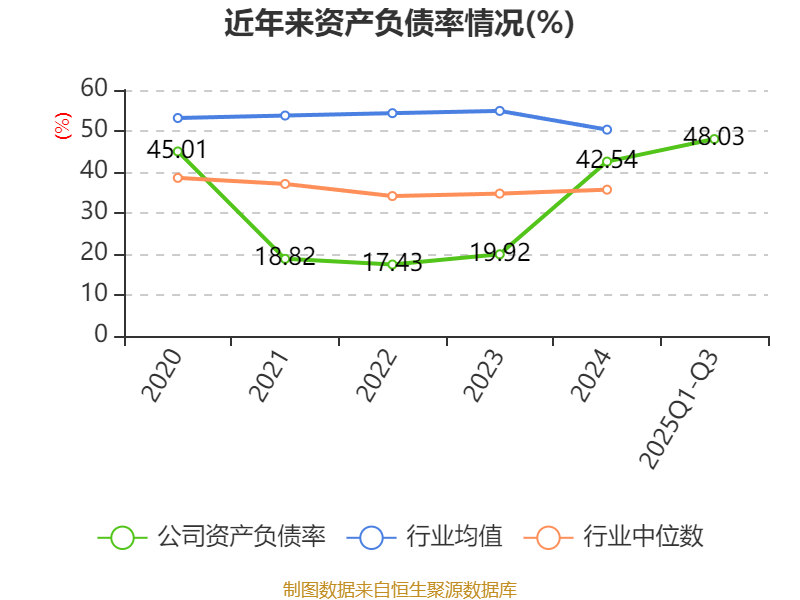 负债重大变化方面,截至2025年三季度末,公司应付票据及应付账款较上年末减少70.99%,占公司总资产比重下降17.3个百分点;长期借款较上年末增加572.97%,占公司总资产比重上升11.91个百分点;短期借款较上年末增加172.33%,占公司总资产比重上升4.91个百分点;一年内到期的非流动负债较上年末增加788.18%,占公司总资产比重上升3.72个百分点。
