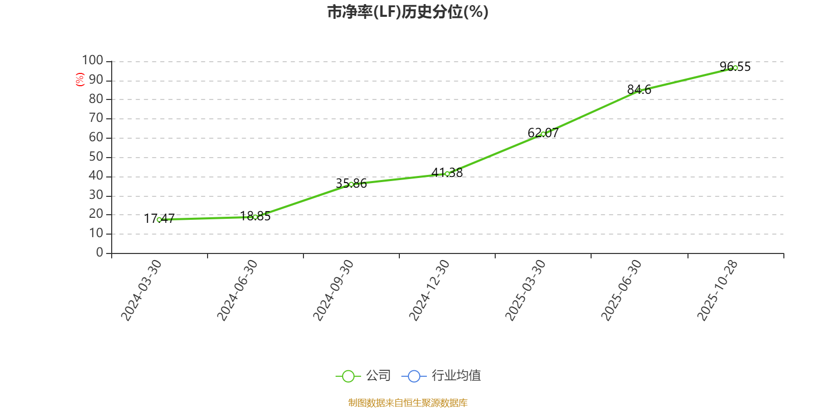 市盈率、市净率为负时,不显示当期分位数,会导致折线图中断。
