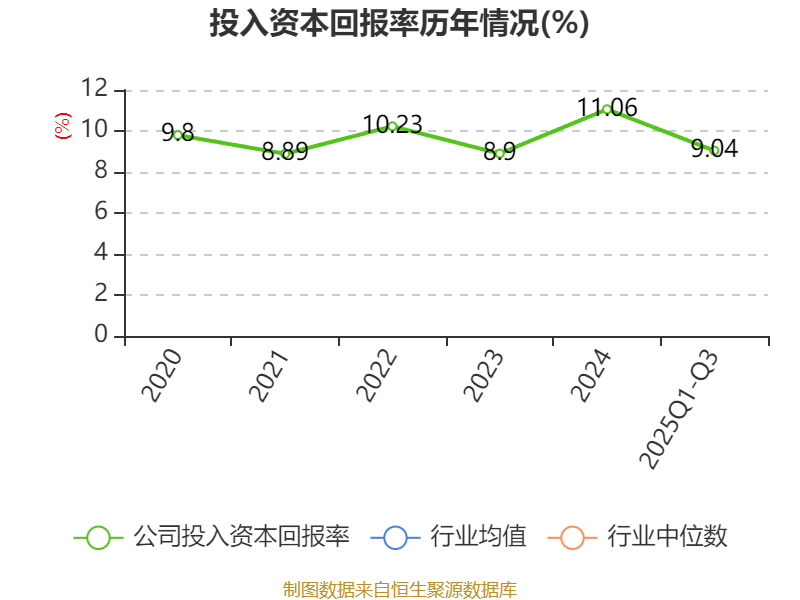 盈利能力方面, 2025年前三季度公司加权平均净资产收益率为9.21%,同比上升0.69个百分点。公司2025年前三季度投入资本回报率为9.04%,较上年同期上升0.98个百分点。