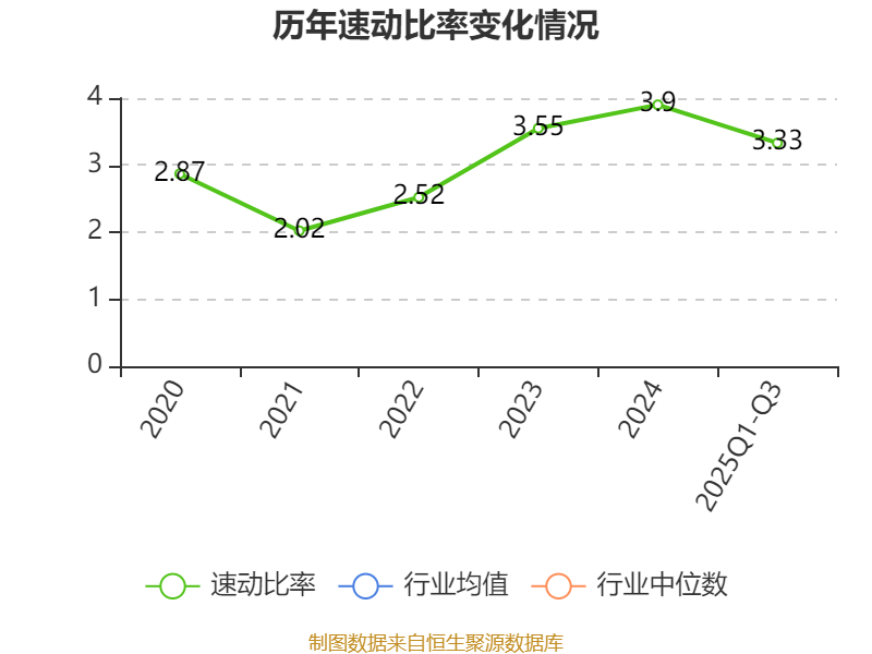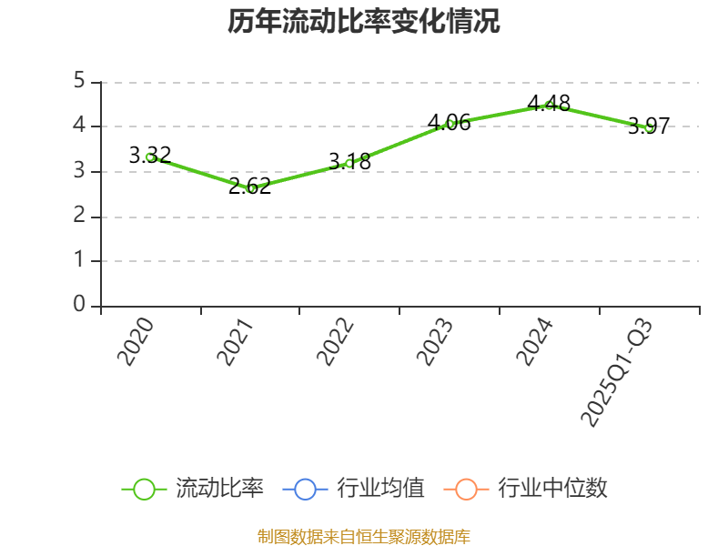 2025年前三季度,公司流动比率为3.97,速动比率为3.33。