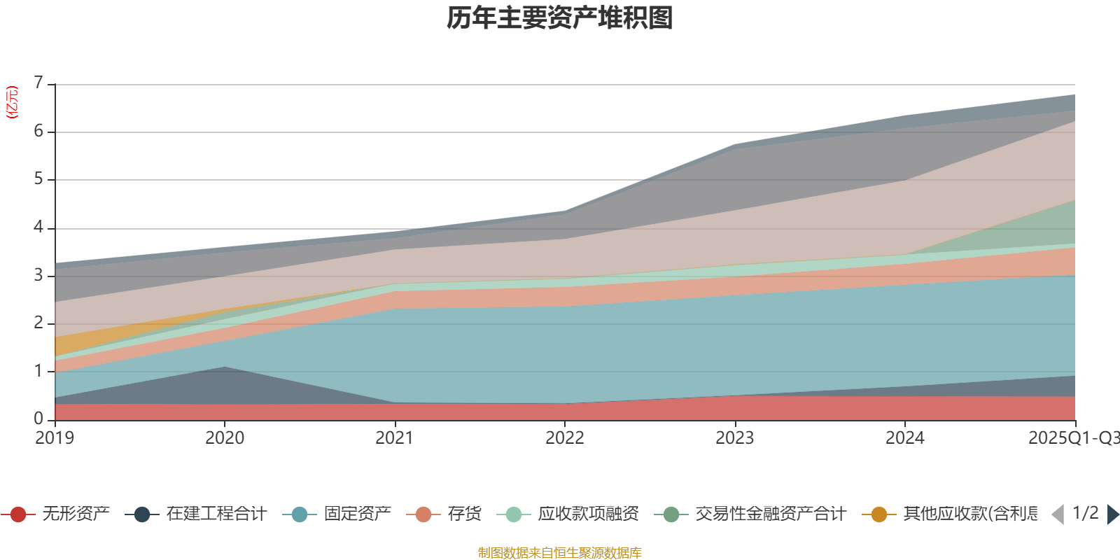 资产重大变化方面,截至2025年三季度末,公司货币资金较上年末减少79.57%,占公司总资产比重下降13.83个百分点;交易性金融资产合计占公司总资产的13.32%,上年末为0;在建工程合计较上年末增加114.66%,占公司总资产比重上升3.23个百分点;固定资产较上年末减少0.67%,占公司总资产比重下降2.35个百分点。