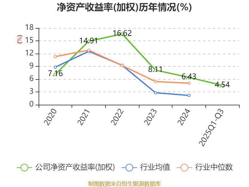 盈利能力方面, 2025年前三季度公司加权平均净资产收益率为4.54%,同比下降0.34个百分点。公司2025年前三季度投入资本回报率为3.19%,较上年同期下降0.92个百分点。