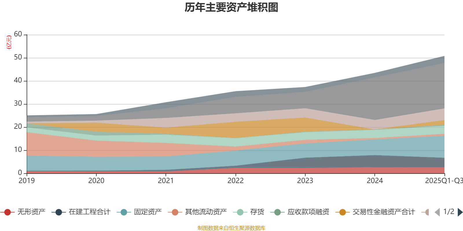 资产重大变化方面,截至2025年三季度末,公司交易性金融资产合计占公司总资产的3.96%,上年末为0;在建工程合计较上年末减少21.04%,占公司总资产比重下降3.9个百分点;货币资金较上年末增加6.73%,占公司总资产比重下降3.7个百分点;固定资产较上年末增加40.09%,占公司总资产比重上升3.11个百分点。