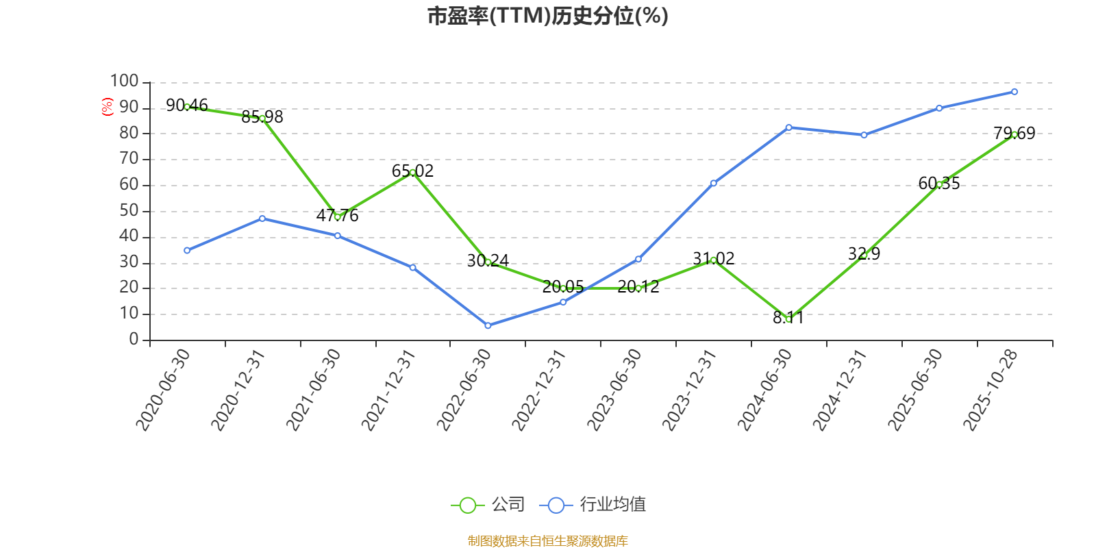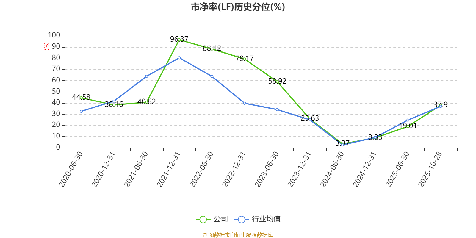 市盈率、市净率为负时,不显示当期分位数,会导致折线图中断。