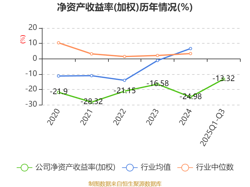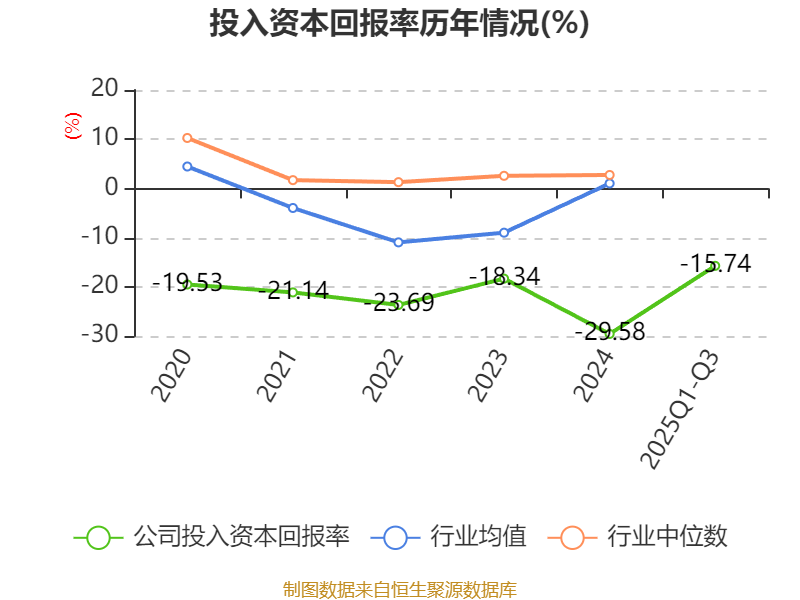 盈利能力方面, 2025年前三季度公司加权平均净资产收益率为-13.32%,同比下降3.73个百分点。公司2025年前三季度投入资本回报率为-15.74%,较上年同期下降4.41个百分点。