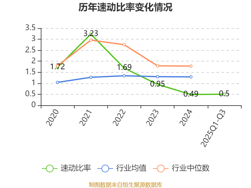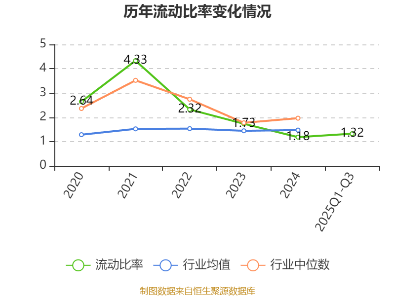 2025年前三季度,公司流动比率为1.32,速动比率为0.5。
