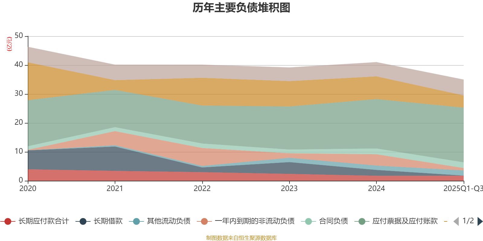负债重大变化方面,截至2025年三季度末,公司短期借款较上年末减少46.09%,占公司总资产比重下降3.67个百分点;一年内到期的非流动负债较上年末减少78.71%,占公司总资产比重下降3.23个百分点;应付票据及应付账款较上年末增加10.65%,占公司总资产比重上升2.62个百分点;长期借款较上年末减少97.86%,占公司总资产比重下降2.08个百分点。