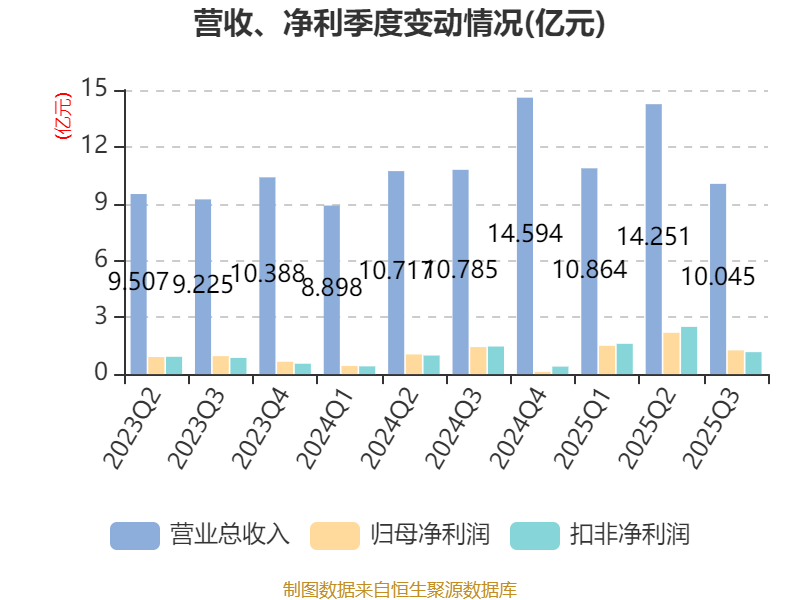 三季报显示,2025年三季度末的公司十大流通股东中,新进股东为招商量化精选股票型发起式证券投资基金、苗怀民,取代了二季度末的徐锋、宋文光。在具体持股比例上,香港中央结算有限公司、苗怀亮持股有所上升。