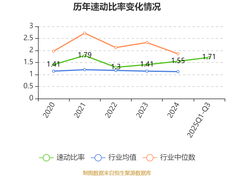 2025年前三季度,公司流动比率为2.24,速动比率为1.71。