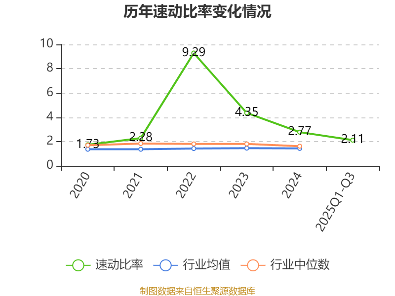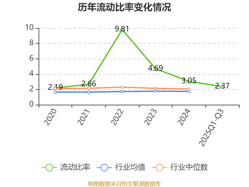 2025年前三季度,公司流动比率为2.37,速动比率为2.11。