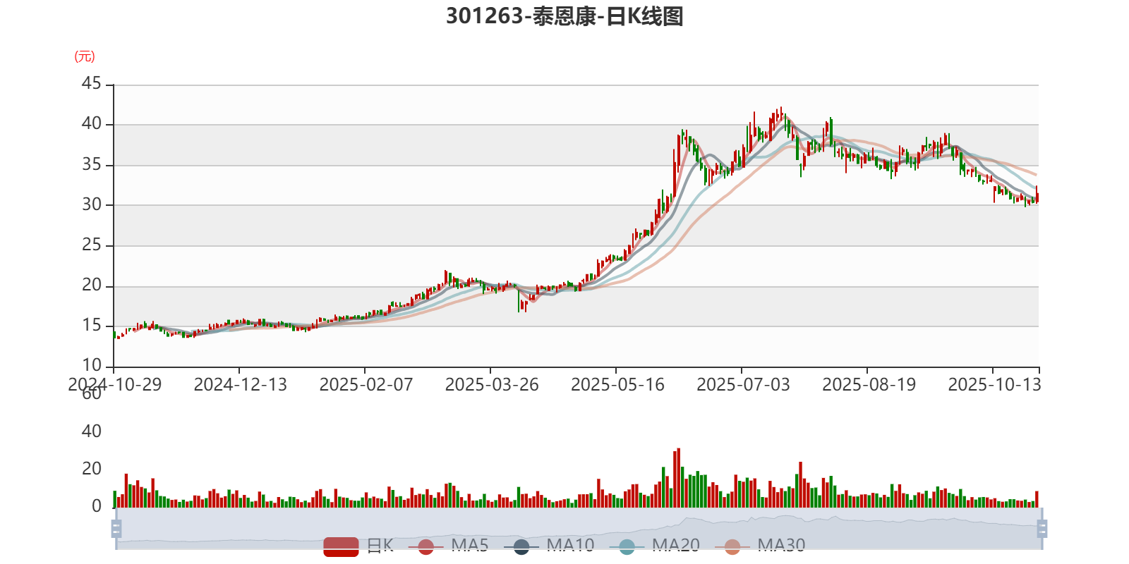 以10月28日收盘价计算,泰恩康目前市盈率(TTM)约为574.77倍,市净率(LF)约7.72倍,市销率(TTM)约19.85倍。