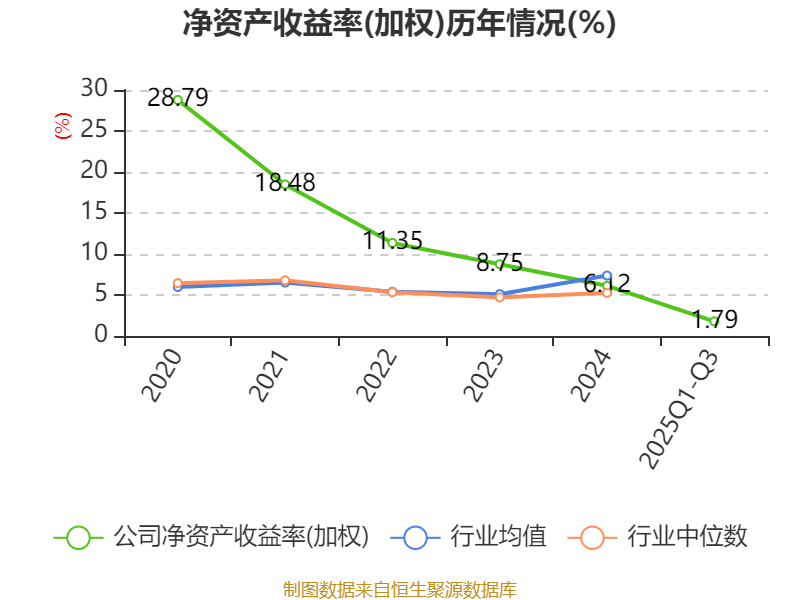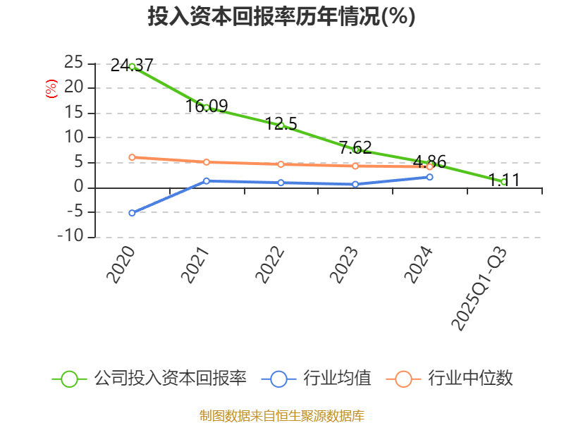 盈利能力方面, 2025年前三季度公司加权平均净资产收益率为1.79%,同比下降4.7个百分点。公司2025年前三季度投入资本回报率为1.11%,较上年同期下降4.11个百分点。