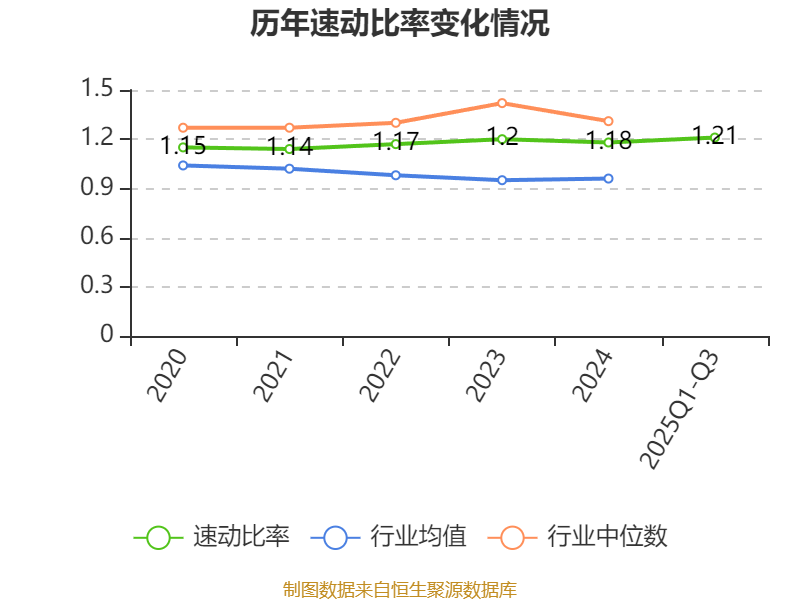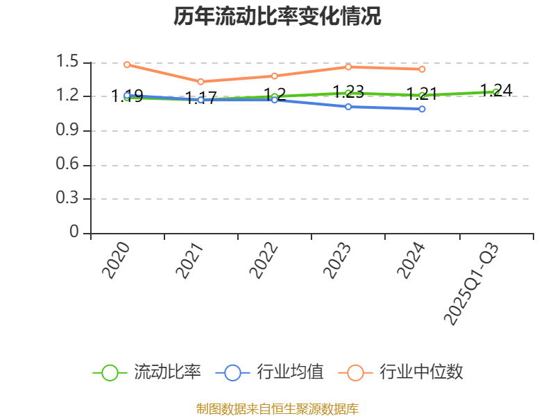 2025年前三季度,公司流动比率为1.24,速动比率为1.21。