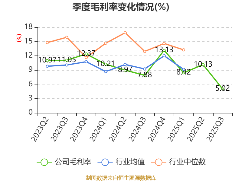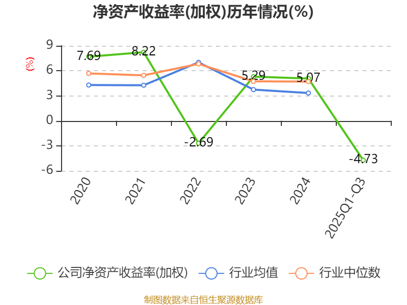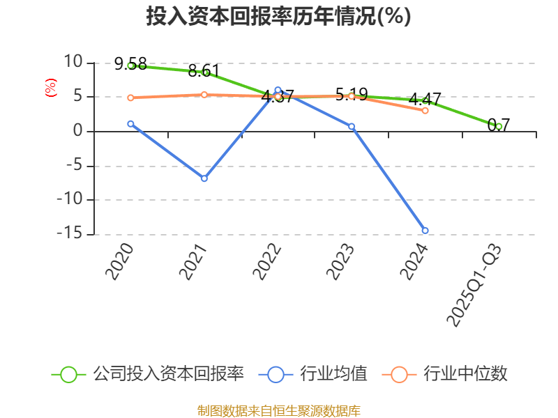 盈利能力方面, 2025年前三季度公司加权平均净资产收益率为-4.73%,同比下降2.71个百分点。公司2025年前三季度投入资本回报率为0.7%,较上年同期上升0.45个百分点。