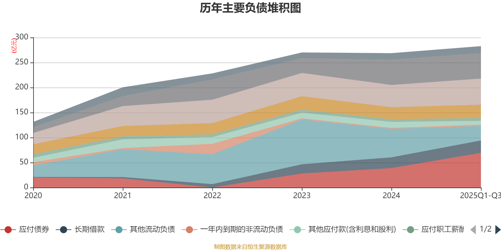 负债重大变化方面,截至2025年三季度末,公司其他流动负债较上年末减少49.34%,占公司总资产比重下降6.49个百分点;应付债券较上年末增加78.96%,占公司总资产比重上升6.14个百分点;应付票据及应付账款较上年末增加17.22%,占公司总资产比重上升1.22个百分点;其他应付款(含利息和股利)较上年末减少35.64%,占公司总资产比重下降1.01个百分点。