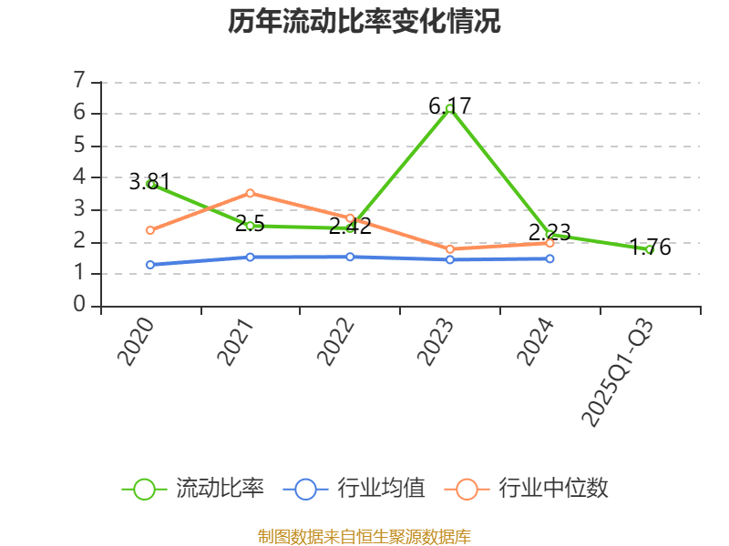 2025年前三季度,公司流动比率为1.76,速动比率为1.74。