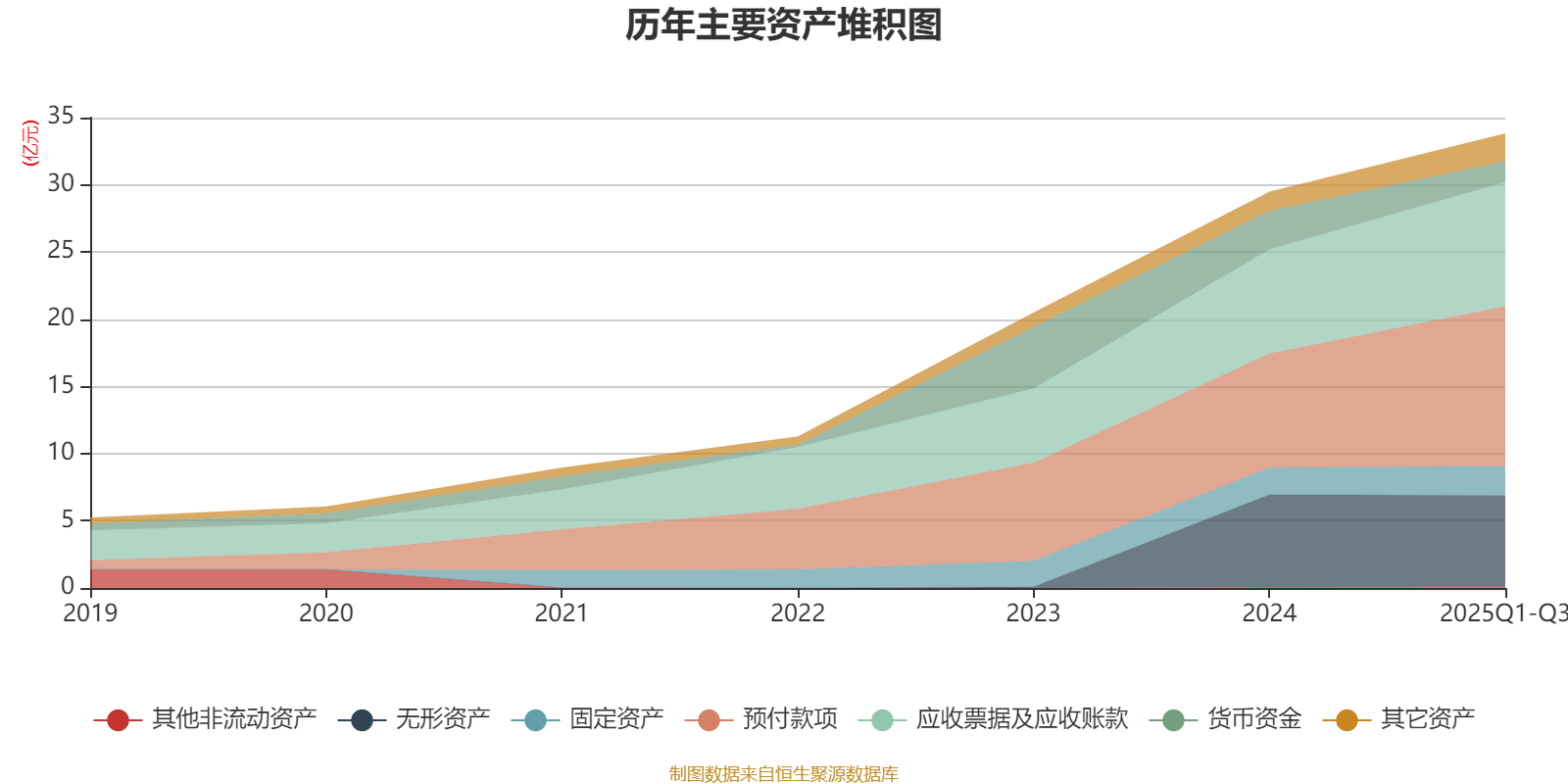 资产重大变化方面,截至2025年三季度末,公司预付款项较上年末增加39.83%,占公司总资产比重上升6.31个百分点;货币资金较上年末减少45%,占公司总资产比重下降5.06个百分点;无形资产较上年末减少1.16%,占公司总资产比重下降3.23个百分点;应收票据及应收账款较上年末增加19.06%,占公司总资产比重上升0.99个百分点。