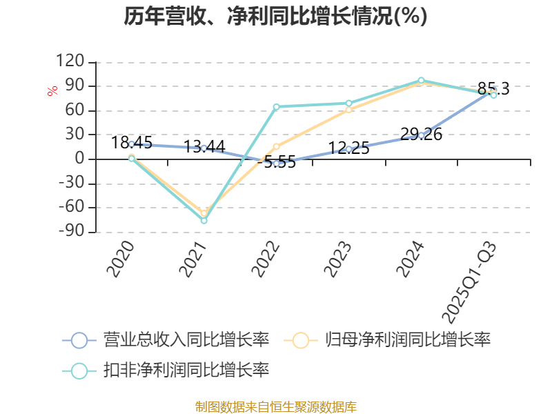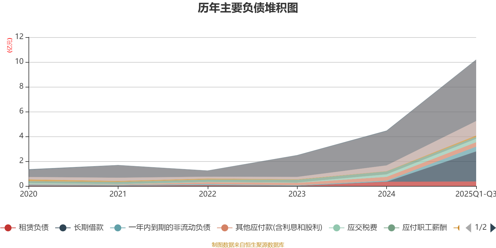 负债重大变化方面,截至2025年三季度末,公司长期借款占公司总资产的13.47%,上年末为0;短期借款较上年末增加78.99%,占公司总资产比重上升9.54个百分点;应付票据及应付账款较上年末增加148.47%,占公司总资产比重上升3.44个百分点;一年内到期的非流动负债较上年末增加323.65%,占公司总资产比重上升1.52个百分点。