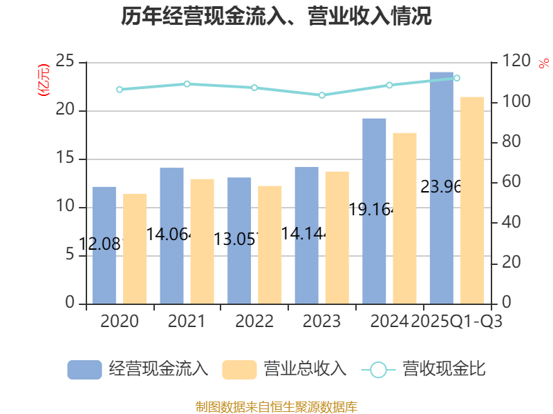 2025年前三季度,公司流动比率为1.96,速动比率为1.45。