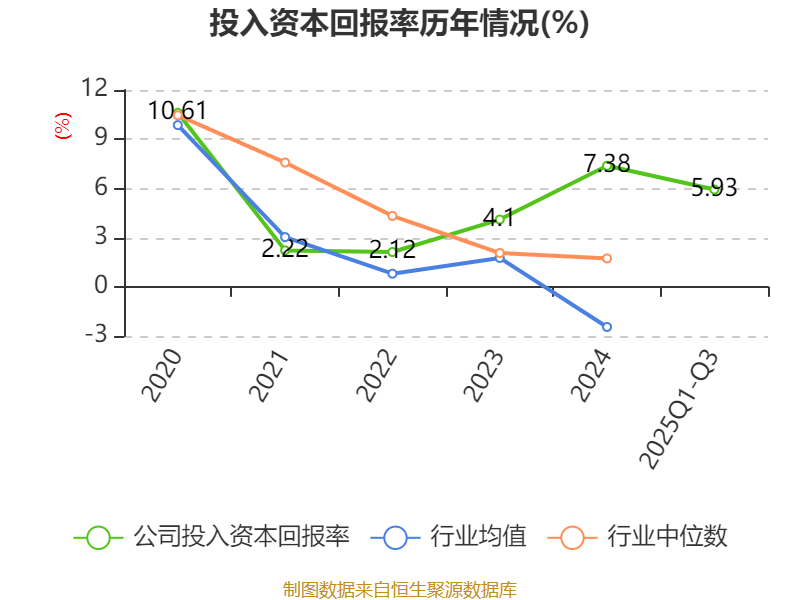 盈利能力方面, 2025年前三季度公司加权平均净资产收益率为10.3%,同比上升5.29个百分点。公司2025年前三季度投入资本回报率为5.93%,较上年同期上升2.02个百分点。