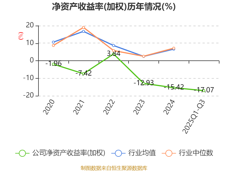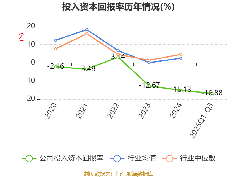 盈利能力方面, 2025年前三季度公司加权平均净资产收益率为-17.07%,同比下降5.51个百分点。公司2025年前三季度投入资本回报率为-16.88%,较上年同期下降5.54个百分点。