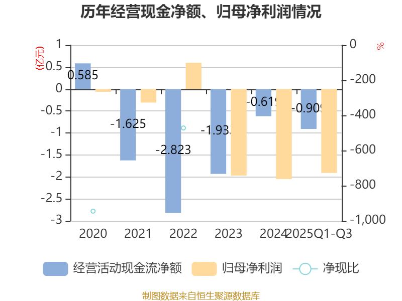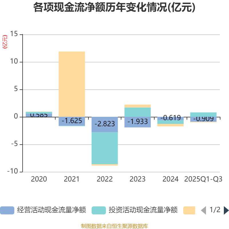 2025年前三季度,公司经营活动现金流净额为-9088.39万元,同比减少6987.71万元;筹资活动现金流净额-999.63万元,同比增加3129.13万元;投资活动现金流净额7995.55万元,上年同期为455.49万元。