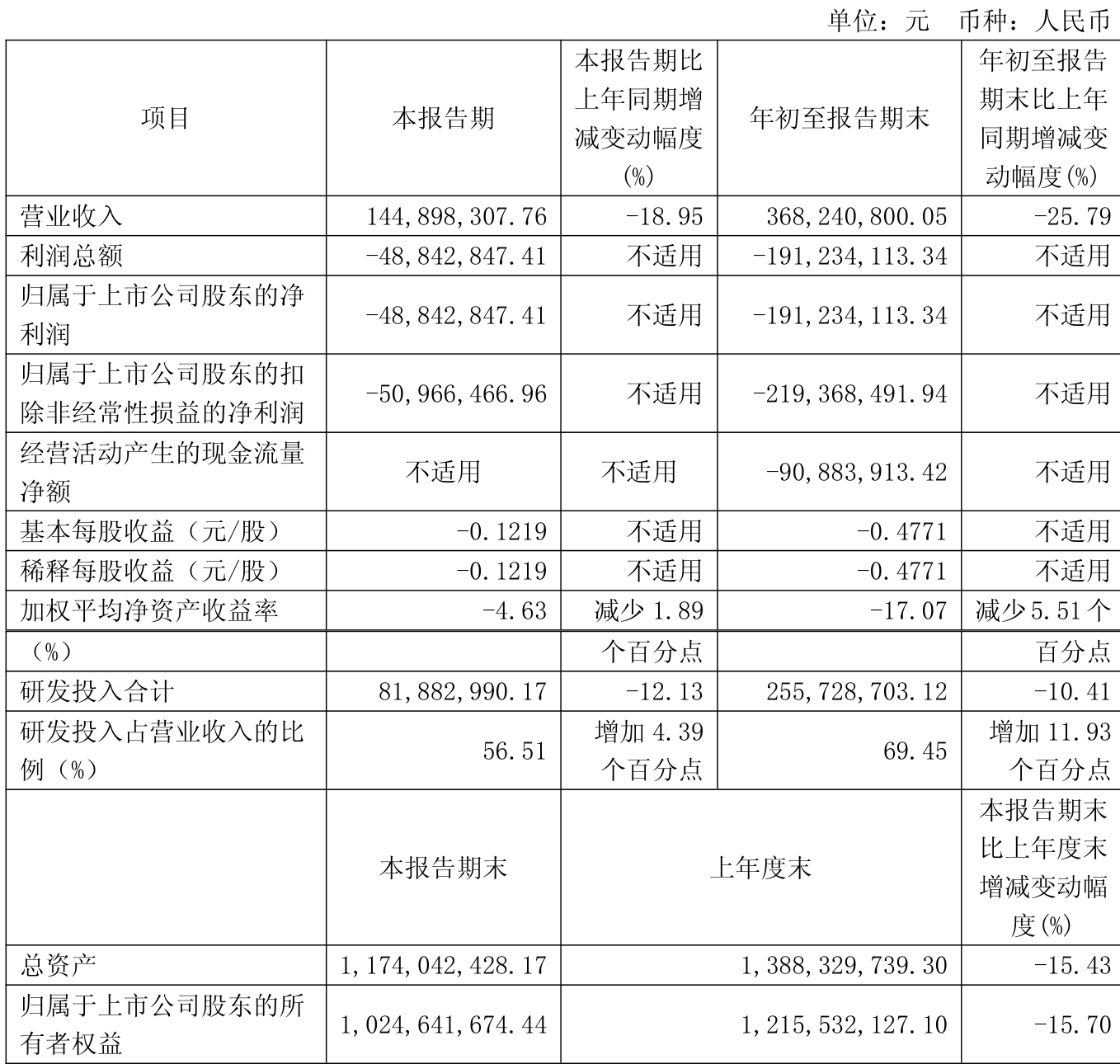 中证智能财讯安路科技(688107)10月29日披露2025年第三季度报告。前三季度公司实现营业总收入3.68亿元,同比下降25.79%;归母净利润亏损1.91亿元,上年同期亏损1.58亿元;扣非净利润亏损2.19亿元,上年同期亏损1.92亿元;经营活动产生的现金流量净额为-9088.39万元,上年同期为-2100.68万元;报告期内,安路科技基本每股收益为-0.4771元,加权平均净资产收益率为-17.07%。