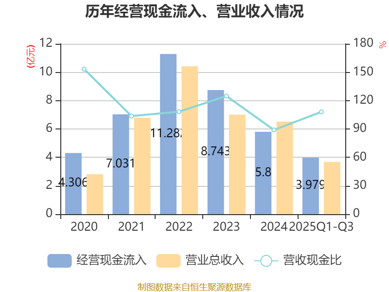 2025年前三季度,公司流动比率为8.18,速动比率为4.38。
