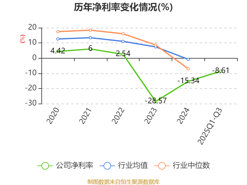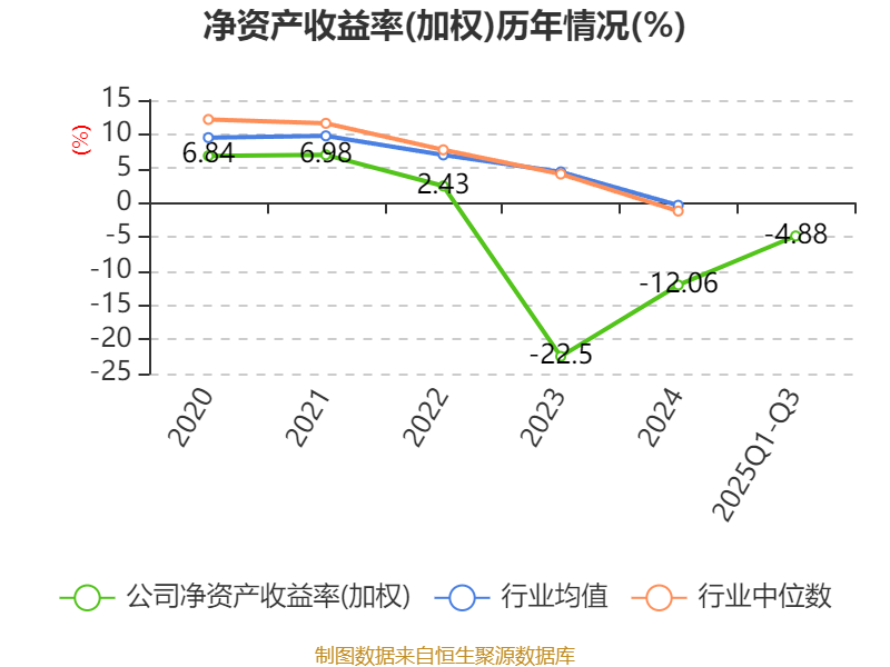 盈利能力方面, 2025年前三季度公司加权平均净资产收益率为-4.88%,同比下降2.99个百分点。公司2025年前三季度投入资本回报率为-1.75%,较上年同期下降1.13个百分点。