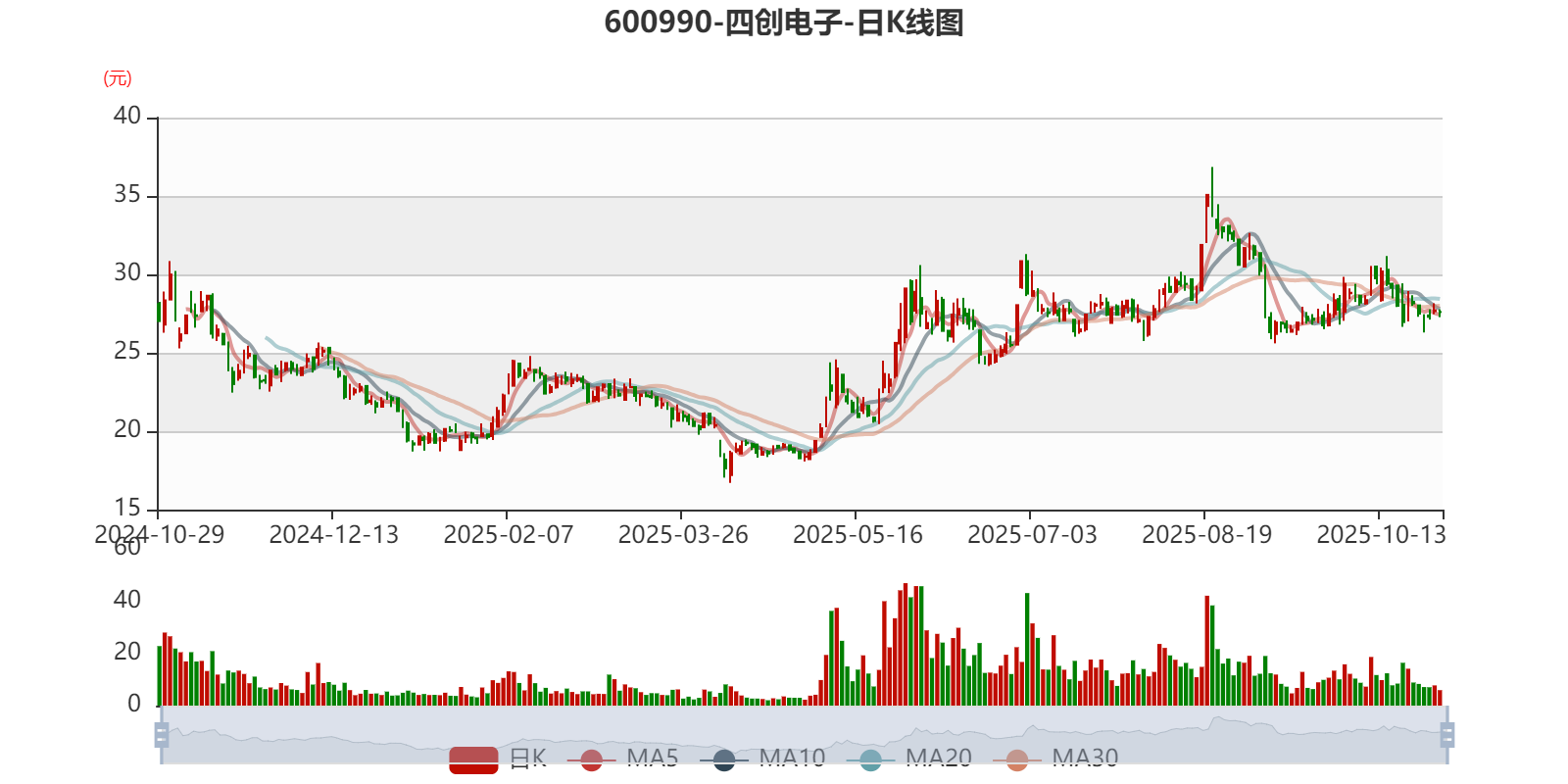 以10月28日收盘价计算,四创电子目前市盈率(TTM)约为-25.31倍,市净率(LF)约4.15倍,市销率(TTM)约4.82倍。