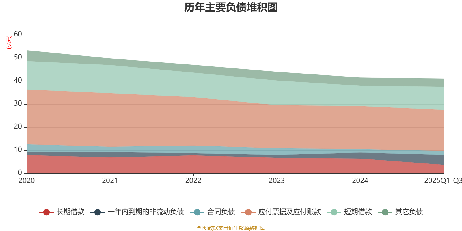 负债重大变化方面,截至2025年三季度末,公司长期借款较上年末减少42.24%,占公司总资产比重下降4.3个百分点;一年内到期的非流动负债较上年末增加61.6%,占公司总资产比重上升2.77个百分点;短期借款较上年末增加14.36%,占公司总资产比重上升2.45个百分点;应付票据及应付账款较上年末减少4.64%,占公司总资产比重下降0.77个百分点。