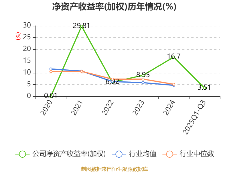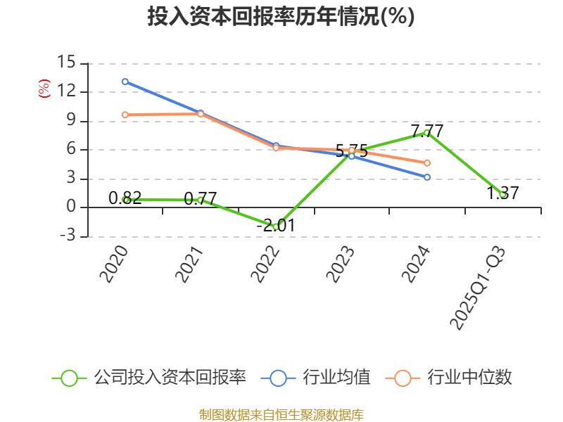 盈利能力方面, 2025年前三季度公司加权平均净资产收益率为3.51%,同比下降3.6个百分点。公司2025年前三季度投入资本回报率为1.37%,较上年同期下降2.64个百分点。