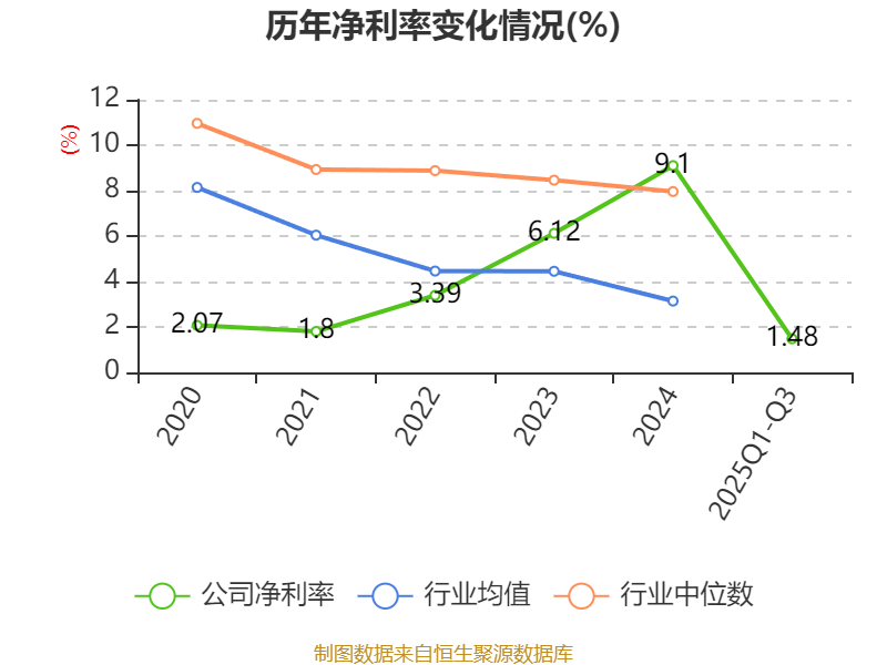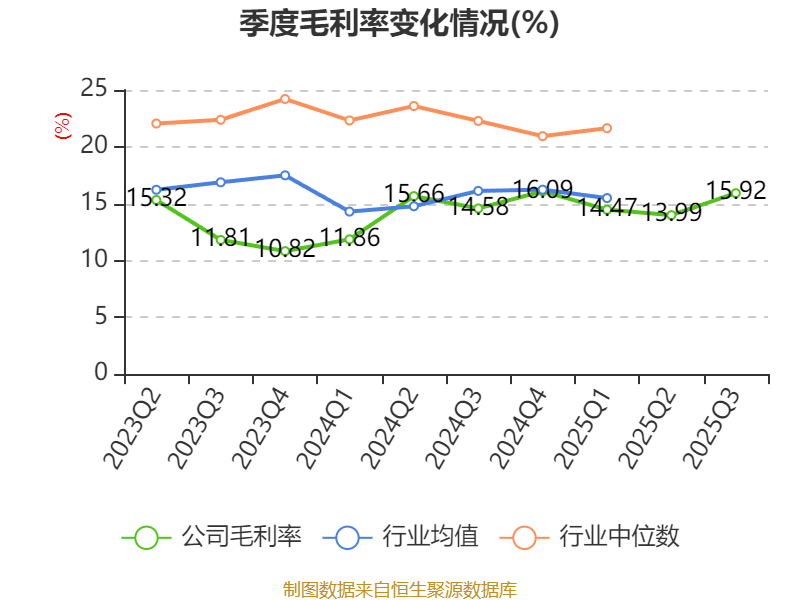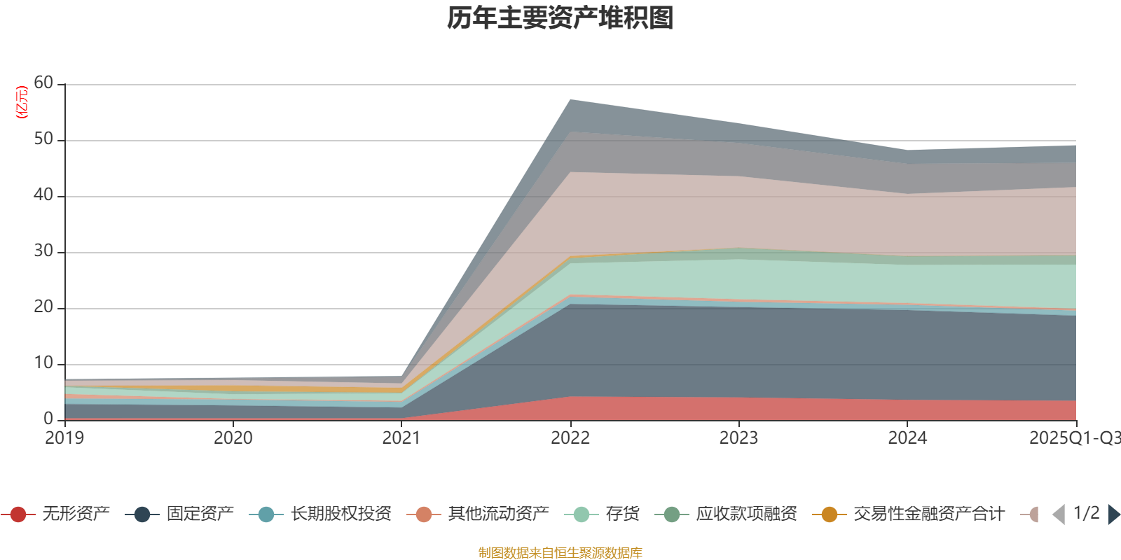 资产重大变化方面,截至2025年三季度末,公司固定资产较上年末减少5.35%,占公司总资产比重下降2.33个百分点;货币资金较上年末减少19.12%,占公司总资产比重下降2.29个百分点;存货较上年末增加16.03%,占公司总资产比重上升1.98个百分点;应收票据及应收账款较上年末增加9.12%,占公司总资产比重上升1.67个百分点。