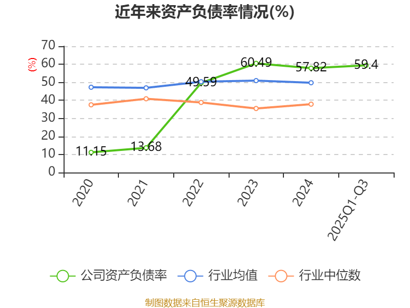 负债重大变化方面,截至2025年三季度末,公司短期借款较上年末增加11.29%,占公司总资产比重上升2.48个百分点;长期借款较上年末增加50.25%,占公司总资产比重上升1.96个百分点;其他应付款(含利息和股利)较上年末增加398.96%,占公司总资产比重上升1.55个百分点;一年内到期的非流动负债较上年末减少27.95%,占公司总资产比重下降1.48个百分点。