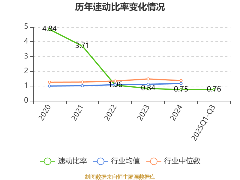2025年前三季度,公司流动比率为1.07,速动比率为0.76。
