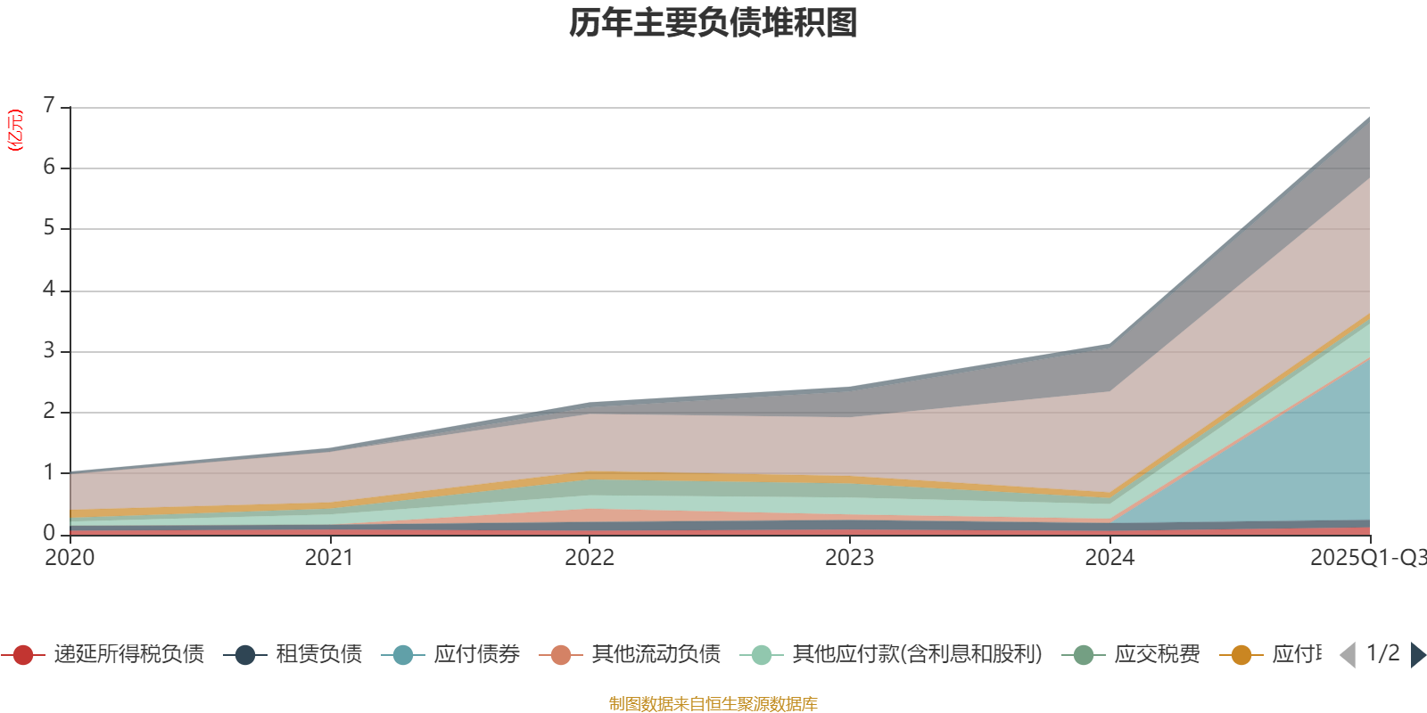 负债重大变化方面,截至2025年三季度末,公司应付债券占公司总资产的15.48%,上年末为0;其他应付款(含利息和股利)较上年末增加129.65%,占公司总资产比重上升1.37个百分点;其他流动负债较上年末减少54.63%,占公司总资产比重下降0.37个百分点;应交税费较上年末减少22.78%,占公司总资产比重下降0.33个百分点。