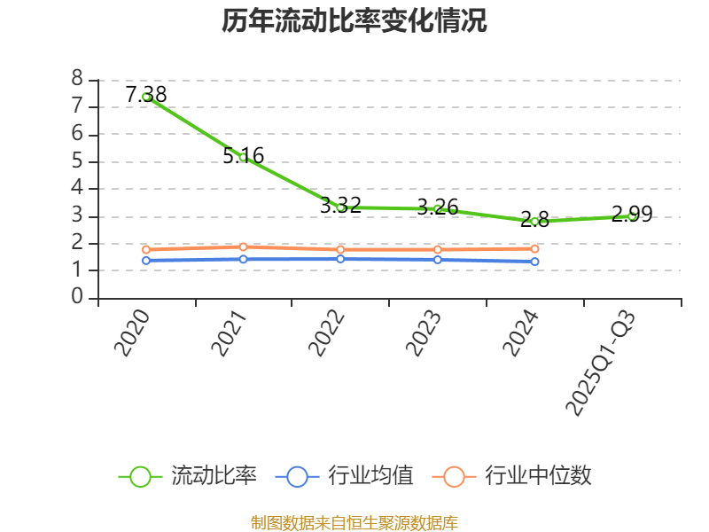 2025年前三季度,公司流动比率为2.99,速动比率为2.76。
