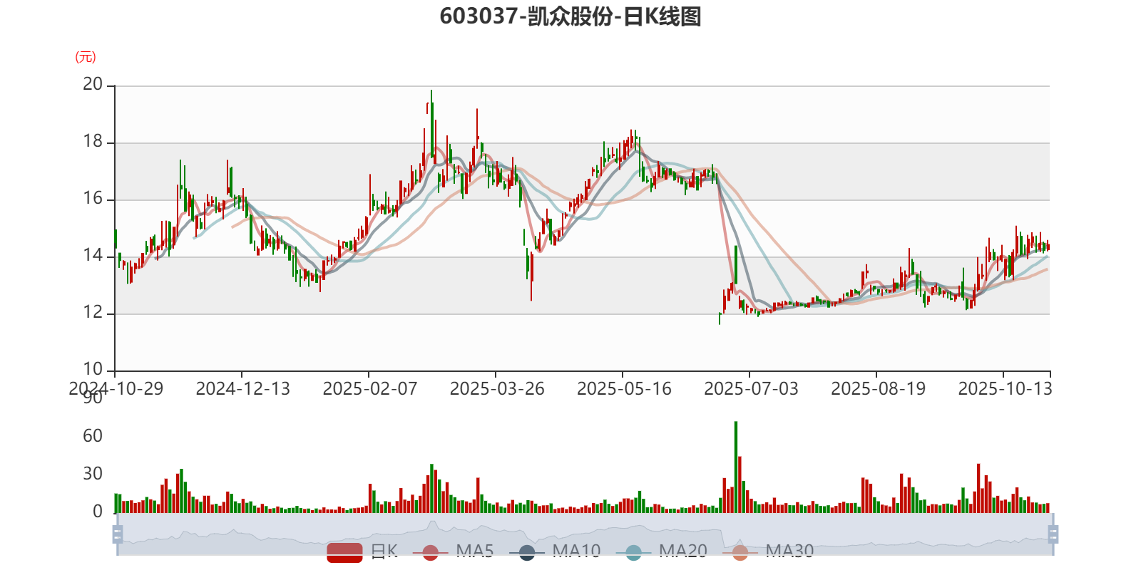 以10月28日收盘价计算,凯众股份目前市盈率(TTM)约为44.28倍,市净率(LF)约3.85倍,市销率(TTM)约4.97倍。