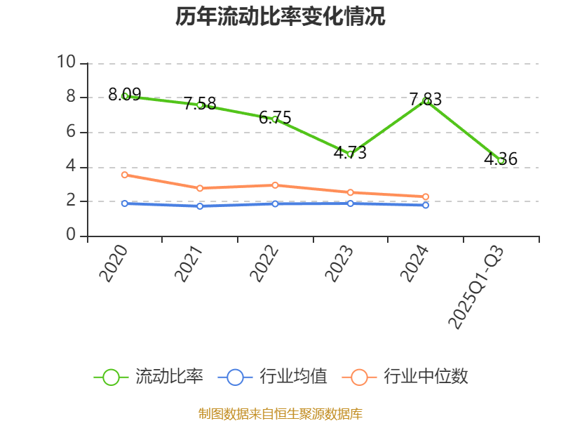 2025年前三季度,公司流动比率为4.36,速动比率为3.1。