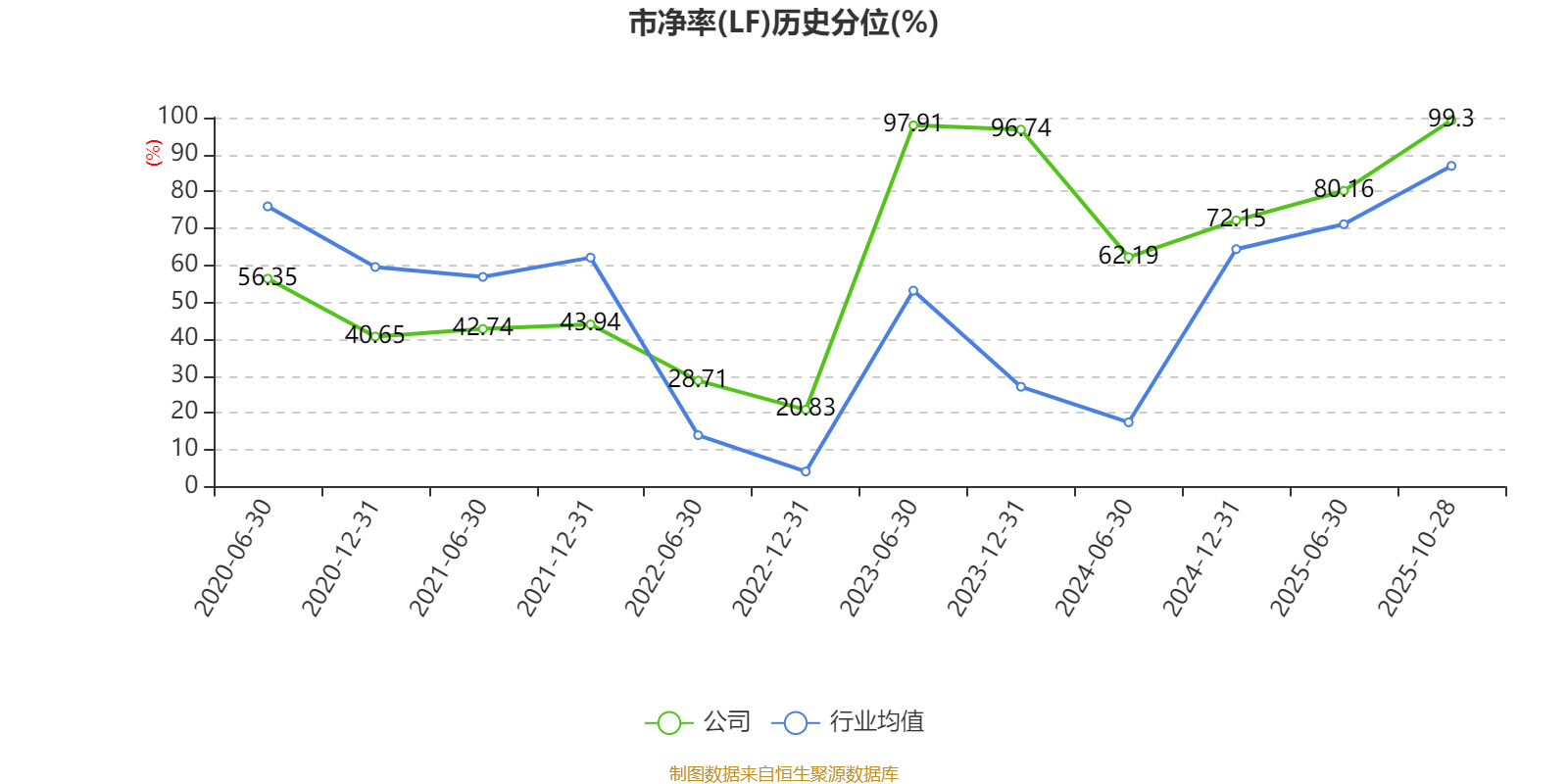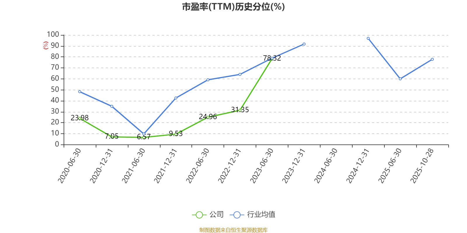 市盈率、市净率为负时,不显示当期分位数,会导致折线图中断。