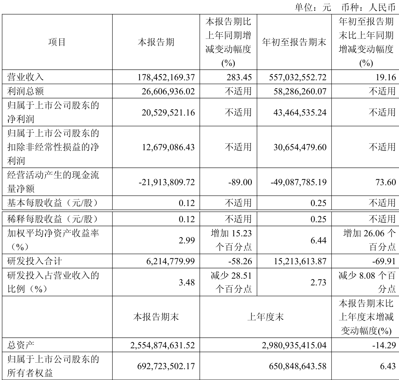 中证智能财讯瀚川智能(688022)10月29日披露2025年第三季度报告。前三季度公司实现营业总收入5.57亿元,同比增长19.16%;归母净利润4346.45万元,同比扭亏;扣非净利润3065.45万元,同比扭亏;经营活动产生的现金流量净额为-4908.78万元,上年同期为-1.86亿元;报告期内,瀚川智能基本每股收益为0.25元,加权平均净资产收益率为6.44%。