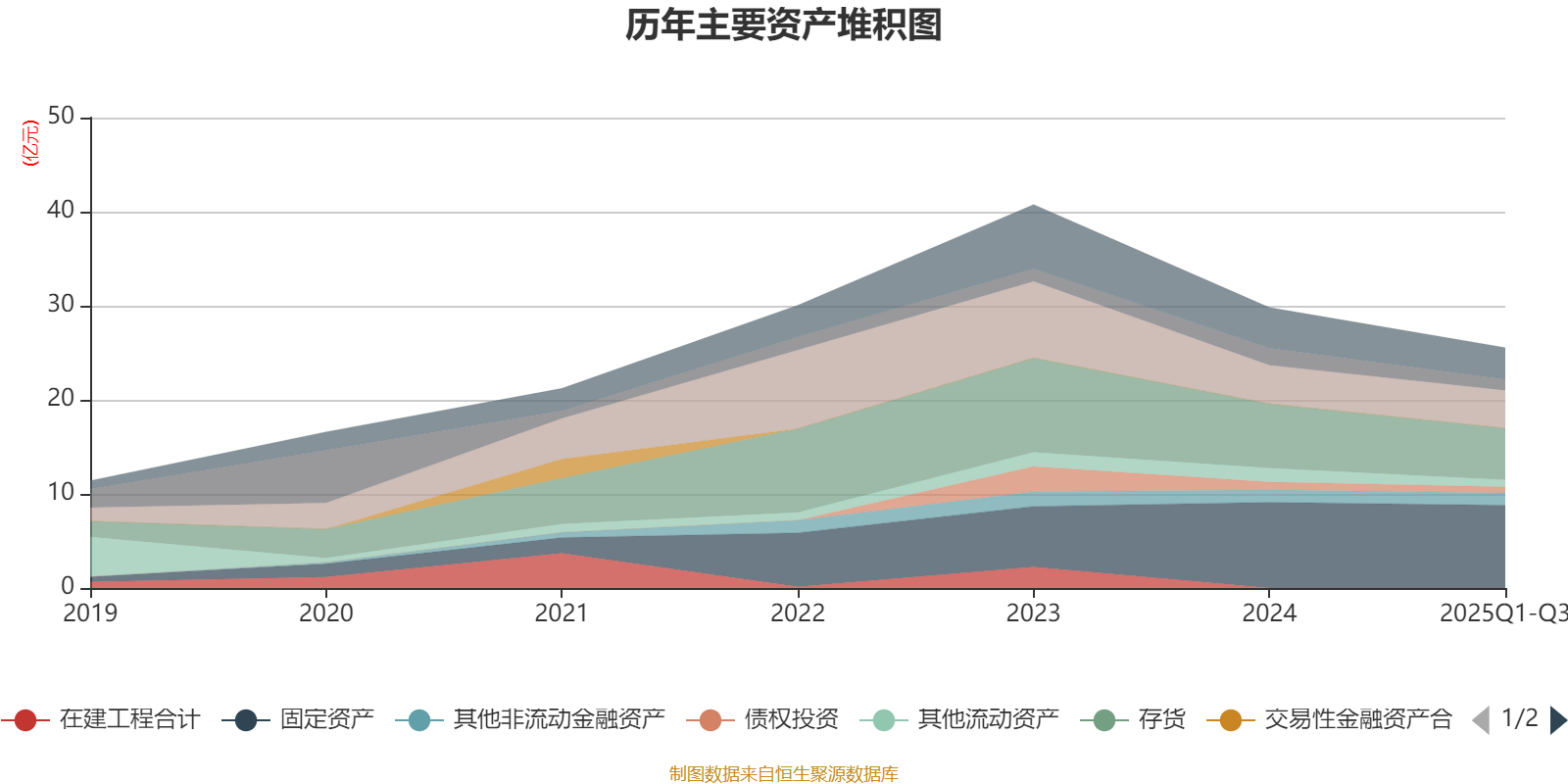 资产重大变化方面,截至2025年三季度末,公司固定资产较上年末减少3.51%,占公司总资产比重上升3.85个百分点;应收票据及应收账款较上年末减少1.8%,占公司总资产比重上升2个百分点;其他流动资产较上年末减少49.28%,占公司总资产比重下降1.99个百分点;货币资金较上年末减少36.48%,占公司总资产比重下降1.58个百分点。
