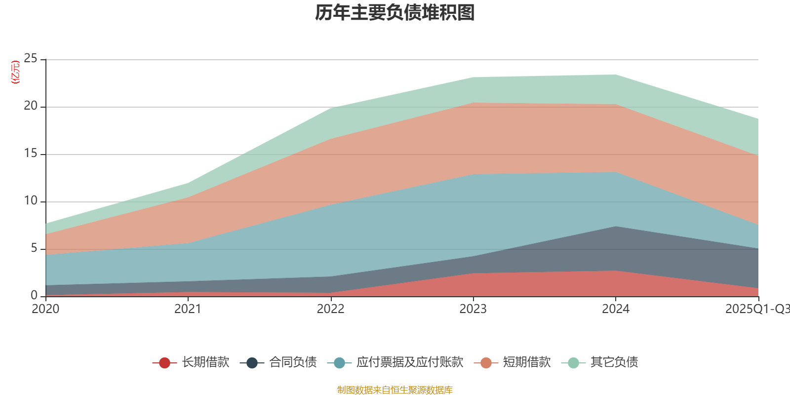 负债重大变化方面,截至2025年三季度末,公司应付票据及应付账款较上年末减少56.47%,占公司总资产比重下降9.45个百分点;长期借款较上年末减少68.67%,占公司总资产比重下降5.75个百分点;短期借款较上年末增加2.04%,占公司总资产比重上升4.57个百分点;应交税费较上年末减少58.26%,占公司总资产比重下降1.06个百分点。