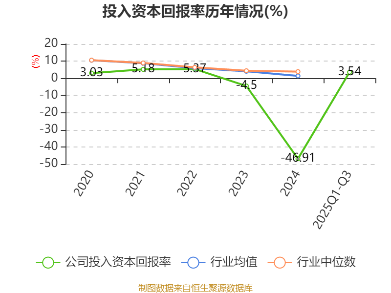 盈利能力方面, 2025年前三季度公司加权平均净资产收益率为6.44%,同比上升26.06个百分点。公司2025年前三季度投入资本回报率为3.54%,较上年同期上升16.38个百分点。