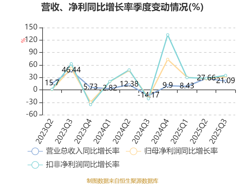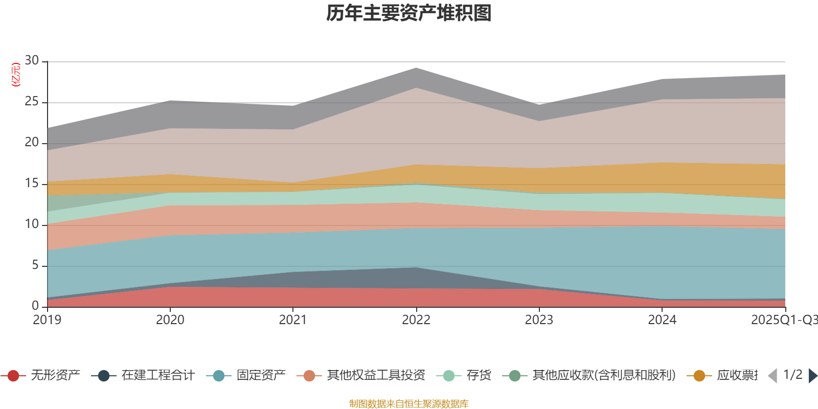 资产重大变化方面,截至2025年三季度末,公司固定资产较上年末减少4.92%,占公司总资产比重下降2.16个百分点;应收票据及应收账款较上年末增加13.73%,占公司总资产比重上升1.53个百分点;存货较上年末减少11.2%,占公司总资产比重下降1.11个百分点;货币资金较上年末增加5.08%,占公司总资产比重上升0.85个百分点。