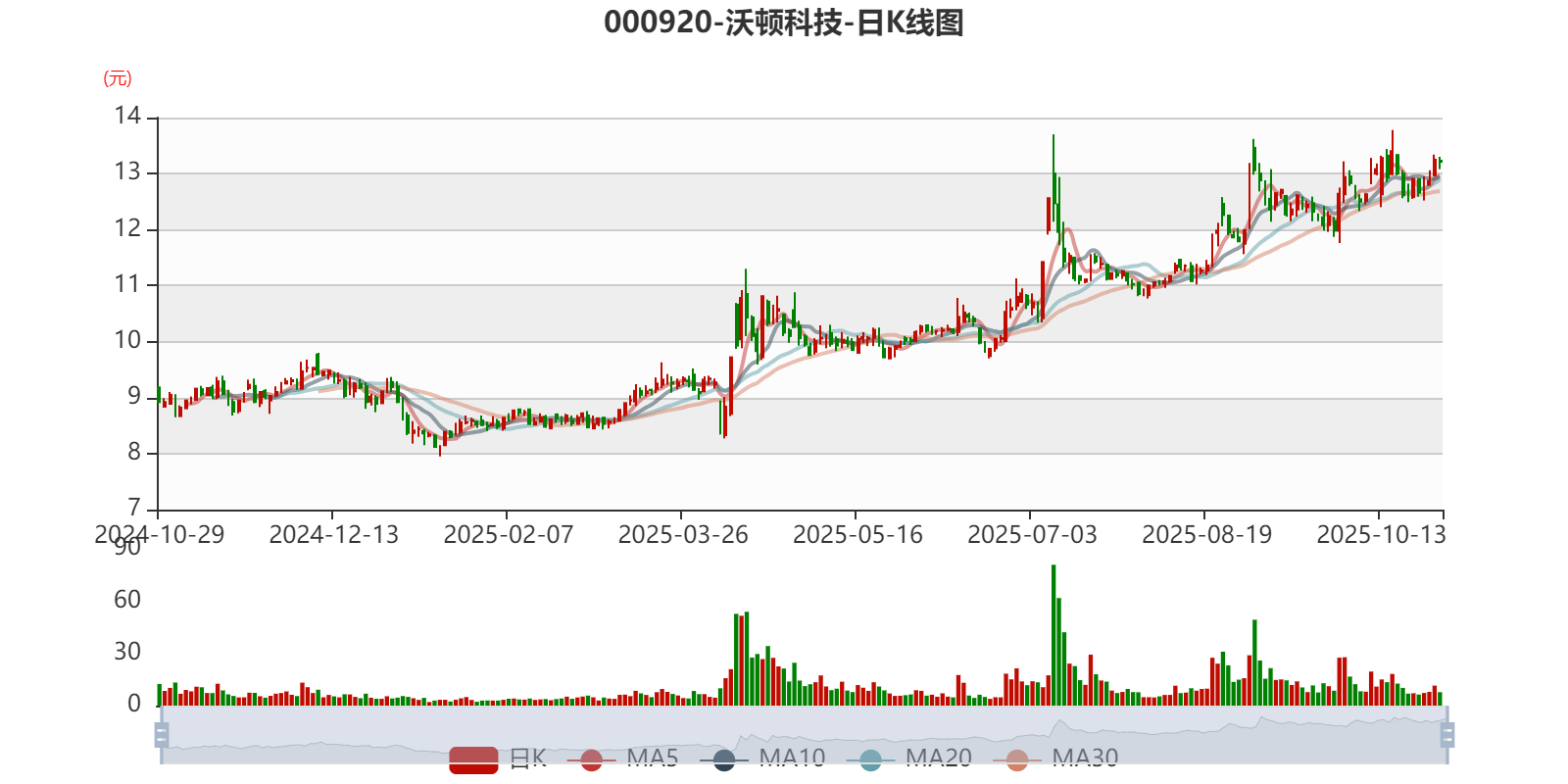 中证智能财讯沃顿科技(000920)10月29日披露2025年第三季度报告。前三季度公司实现营业总收入13.82亿元,同比增长19.72%;归母净利润1.95亿元,同比增长29.21%;扣非净利润1.93亿元,同比增长30.57%;经营活动产生的现金流量净额为1.22亿元,同比下降56.67%;报告期内,沃顿科技基本每股收益为0.413元,加权平均净资产收益率为9.89%。