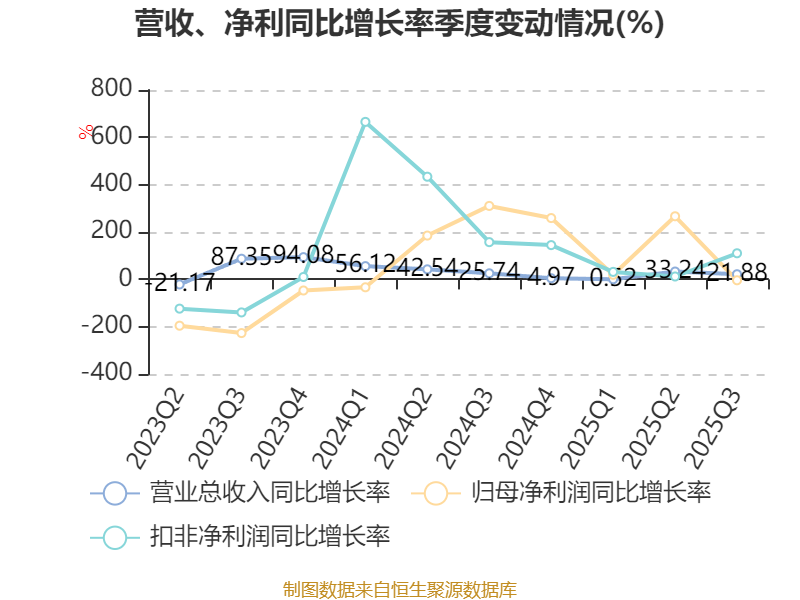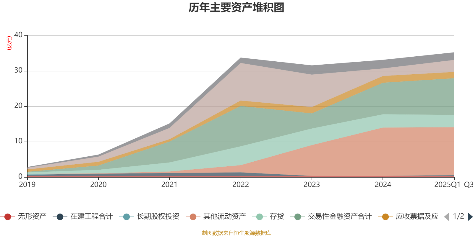资产重大变化方面,截至2025年三季度末,公司货币资金较上年末增加57.13%,占公司总资产比重上升3.11个百分点;其他流动资产较上年末减少0.97%,占公司总资产比重下降2.85个百分点;交易性金融资产合计较上年末增加16.27%,占公司总资产比重上升2.5个百分点;存货较上年末减少6.88%,占公司总资产比重下降1.42个百分点。
