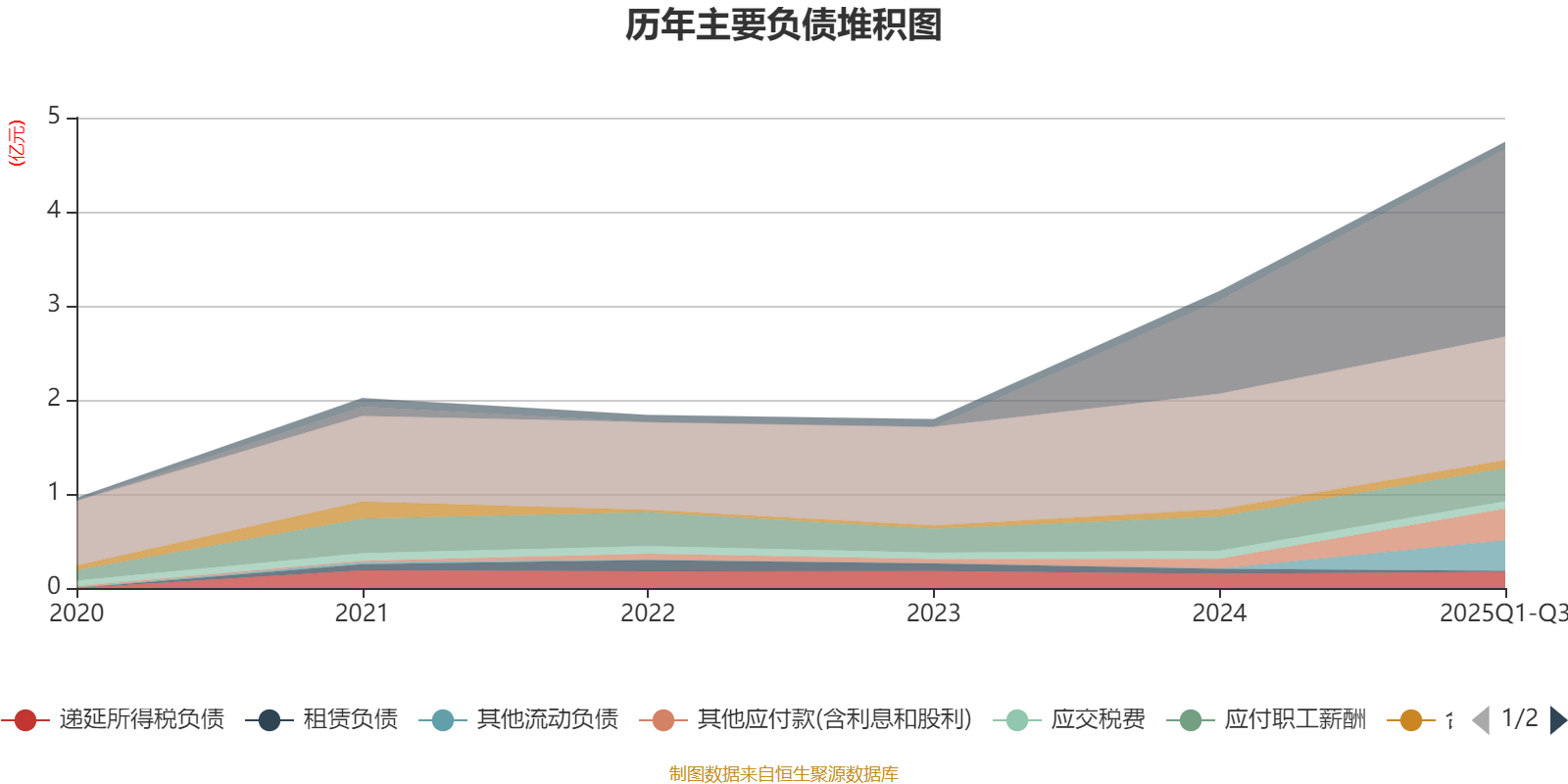 负债重大变化方面,截至2025年三季度末,公司短期借款较上年末增加100.44%,占公司总资产比重上升2.66个百分点;其他流动负债较上年末增加7350.72%,占公司总资产比重上升0.91个百分点;其他应付款(含利息和股利)较上年末增加230.48%,占公司总资产比重上升0.65个百分点;租赁负债较上年末减少80.06%,占公司总资产比重下降0.13个百分点。